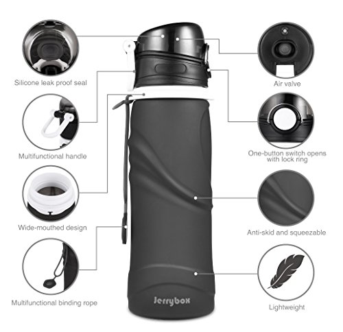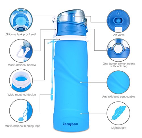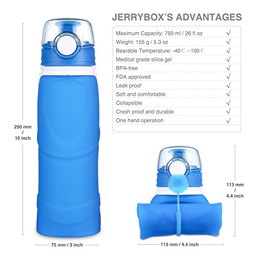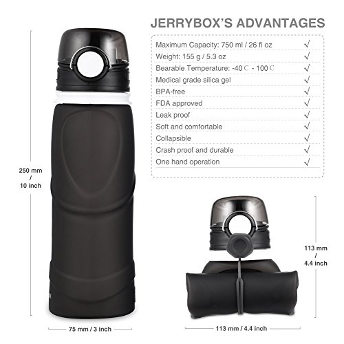 -. Title : JerryBox Collapsible Water Bottle - 750ml, Silica Gel, Medical Grade, BPA Free, FDA Approved, Leak Proof Silicone Foldable Sports Bottle, for Sport, Outdoor, Travel, Camping, Picnic(26 oz)