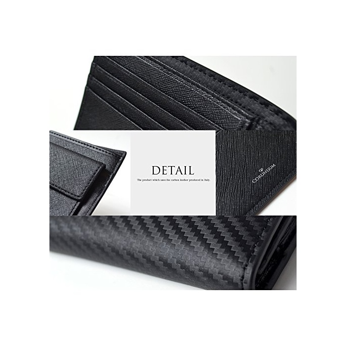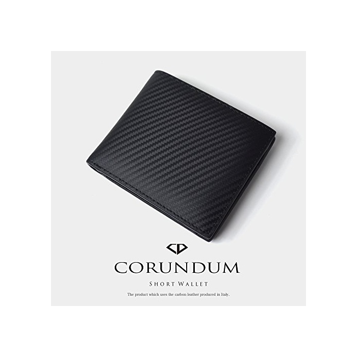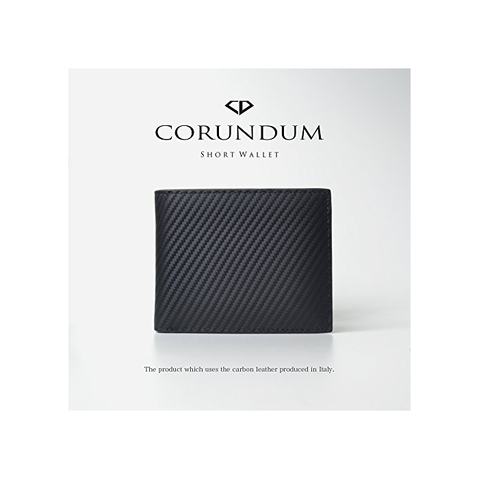 【CORUNDUM】 《고란다무》 이탈리아제 카본 레더 반 접기단 지갑