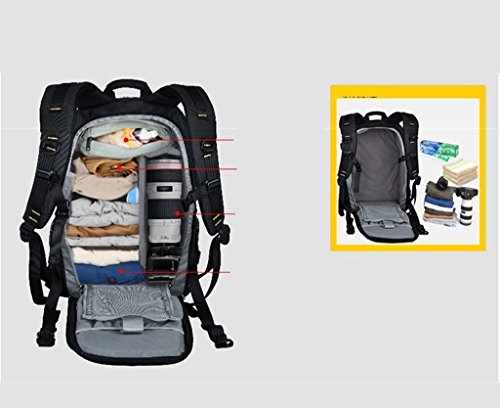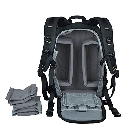 The padded insert camera partition comes with 8 removable and adjustable Velcro taped cushions. It can be constructed into many small partitions, each of which can house a standard zoom lens. The camera partition padded insert bag is anti-shock and separates your camera body and lenses with other belongings in your travel backpack.