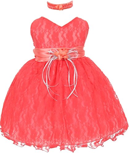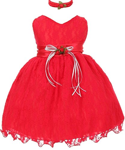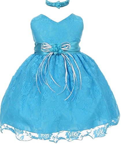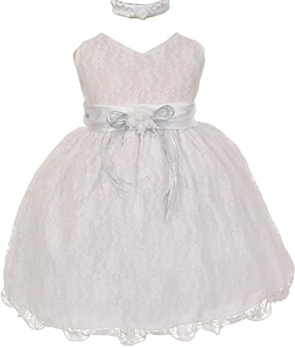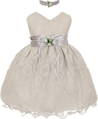 Overlay Stretch Lace Dress Satin Sash with Flower Decorate Rear Zipper and Sash Tie Back for Perfect Fit Comes with Matching Headband Made in U.S.A. Brand : Aki_Dress Product Dimensions(LxWxH) :