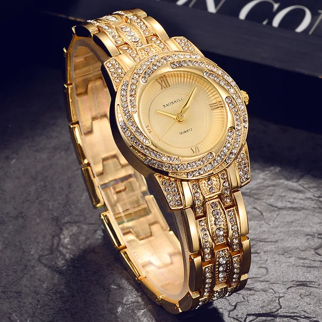 | [해외] BAOSAILI 골드 도금 빛나게 여성 시계 럭셔리 모조 다이아몬드 숙녀 팔찌 시계 여성 패션 드레스 손목 시계 |