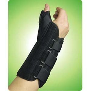 -. Feature : Ultra Fit Wrist Brace With Thumb Abduction Left Extra Large Easy one handed application. / Easy one handed application. / Black brushed tricot with an "air space" liner. / 1.5" removable aluminum stay; Semi rigid thumb abduction. / Indications: Thumb immobilization; Sprains; Muscle strains; Carpal tunnel syndrome; Post-op; Ligament instability; Arthritis; Cast Removal.