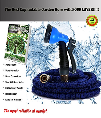 -. Feature : 100% GUARANTEED with a Full 12-Month Warranty! Flexible garden hose comes with a 1 year warranty, 365 days money back guarantee. Have no reservations about this extendable hose! / COMPLETE COLLAPSIBLE HOSE SET comes with 50 Ft Expandable Hose, Metal Valve, Nozzle, 6 Washers & Hose Hanger / BEST GARDEN HOSE MATERIALS with 3 Layers & PVC + Fabric Cover, Brass Coupler, & Rubberized/Plastic Accessories / POWERFUL BUT LIGHTWEIGHT FLEXIBLE HOSE expands from 17 to 50 Ft with High-Pressure Resistance under 170PSI/12.7 / EASY TO USE & STORE with no kinking or tangling. 8 Spray Settings on the Nozzle. FREE eBooks too!