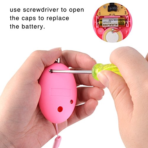 -. Feature : INSTANT ACTIVATION: Once you pull the metal pin, the device emits a 120 decibel (ambulance-level) alarm to alert the surrounding people. The siren will sound continuously for 30 minutes unless pin is returned to device / SLEEK AND PORTABLE:This lovely keychains is perfect attachment to your handbag, belt or school bag for convenient, instant access, and such a small fashion item will not draw the attention of attackers or intruders / BROAD CONSUMER APPEAL: A self-defense option for Young People, College Students, Night Owls, Lone Workers, Joggers, Elderly, Nurses,Personal Care Workers, Delivery Route Employees / SUPPORTED BY BUILT-IN BATTERY:Supported by heavy duty ALKALINE battery 23A/12V , the alarm sound duration lasts about 30 mins (ALKALINE battery*1PCS),check the battery regularly and replace them if necessary; Do not use it unless in emergency situation / TIPS:When the alarm sound goes low, please remove screws from back cover and replace new batteries.You can find replacement batteries at any convenience Store.(batteries included)