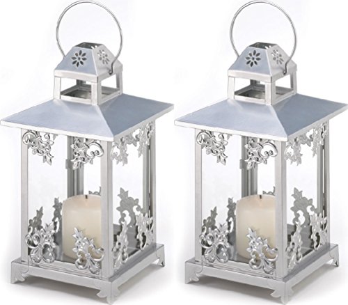 -. Title : 2 Scrollwork Silver Lantern Large Candleholder Wedding Centerpieces -