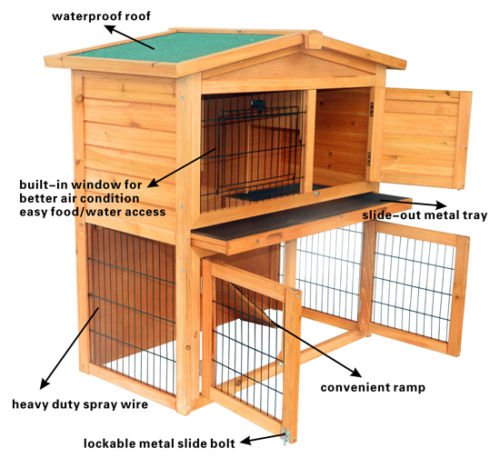 -. Binding : Misc. -. Brand : THAILAND GRAND SALE -. EAN : 0703307356398 -. Feature : Great for rabbits, chickens, ducks, and other poultry / Slide-out metal tray allows for easy cleaning access / Green asphalt composite material waterproof roof prevent water penetration / Lockable metal slide bolts on all doors (except door in the window) / Provides your rabbits with an affordable, durable and comfortable habitat -. Label : PawHut -. Manufacturer : PawHut -. PackageQuantity : 1 -. ProductGroup : Pet Products -. ProductTypeName : PET_SUPPLIES -. Publisher : PawHut -. Studio : PawHut -. Title : Good Quality 40" Wooden Pet Cage And Hutch For Small Animal -. UPC : 703307356398