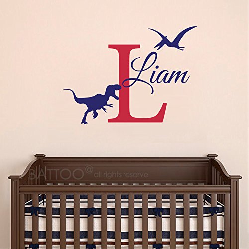 -. Title : BATTOO Personalized Boy Decal Dinosaur Name Wall Decal with Initial Monogram - Dinosaur Wall Sticker - Tyrannosaurus Rex and Pterodactyl - Boys Room Nursery Decal