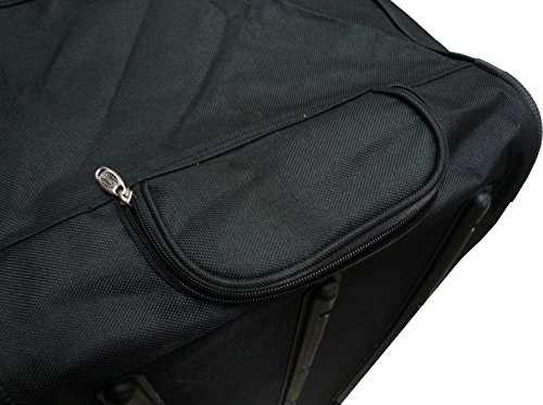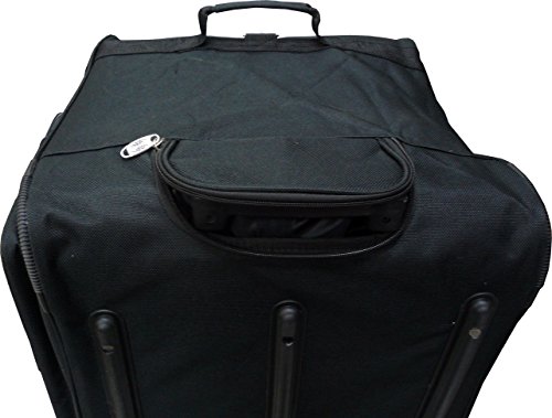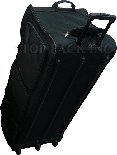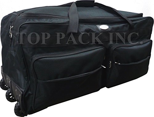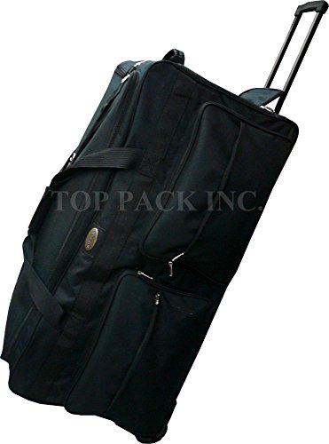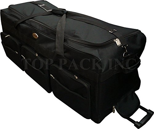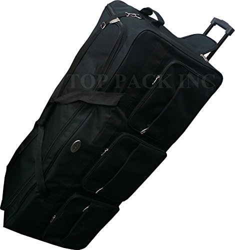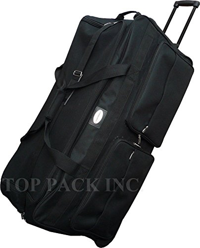 -. Brand : TP -. Color : Black -. Department : unisex-adult (lage only) -. Feature : Material - 600D Polyester construction / Full size U-shaped main compartment with twin zipper closure for easy loading / High impact inline skate wheels. Hideaway retractable handle. / External zippered pockets for last-minute storage. Adjustable shoulder strap / A handle for easy carrying. -. ProductGroup : Apparel -. ProductTypeName : LAGE -. Title : 30"/36"/42" Black Heavy Duty 1200D Polyester Rolling Duffle Bag