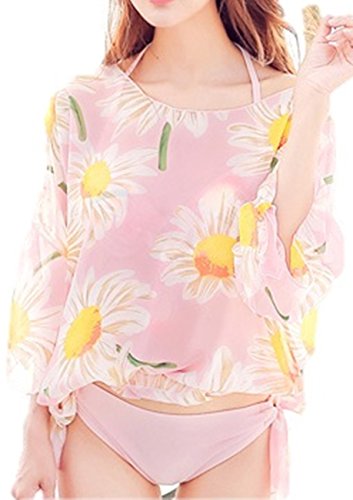 -. Title : (ザデイアンドスノウ) TheDay&Snow 水着 3点 セット ビキニ ワンピース シフォン パレオ 花柄 リボン セパレート ホルターネック ワイヤー パッド 入り 体型 カバー シフォン オーバーウェア 大柄 タンキニ ビーチ ウェア レディース