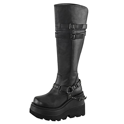 Product Description Add some height to your look with these black wedge boots. They are knee high and have studded straps.0