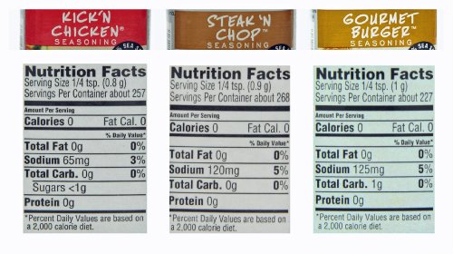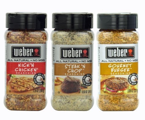 -. Feature : Steak 'N Chop: 8.50 ounces / (241 g) / Kick 'n Chicken: 7.25 ounces / (206 g) / Gourmet Burger: 8.00 ounces / (227 g) / Variety pack provides 3 of Weber's best herb/spice combinations for grilling and food preparation / All Natural - No MSG - Made with 100% Sea Salt