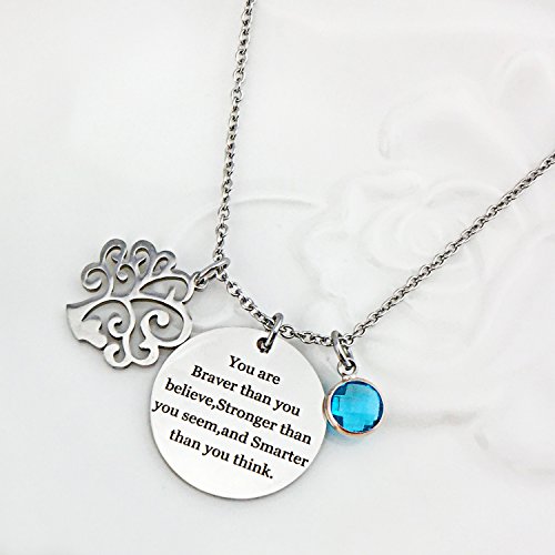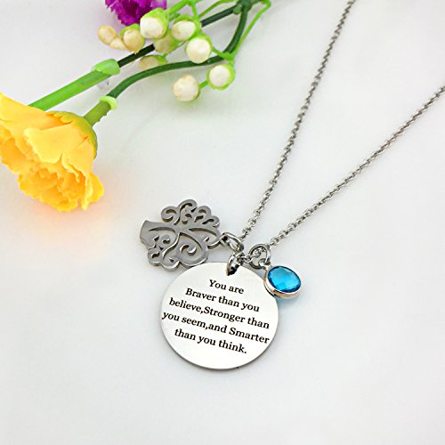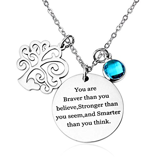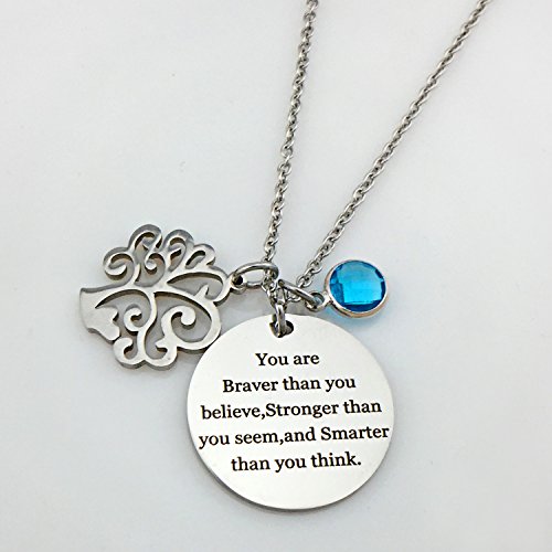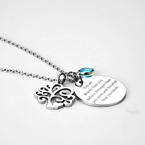 About Xingyue Jewelry Birthstone charms pendant necklace, Family Tree of Life necklace, "You are braver than you believe Stronger than you seem and Smarter than you think" necklace, for women girl and kids.