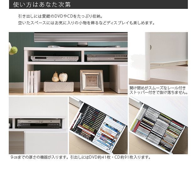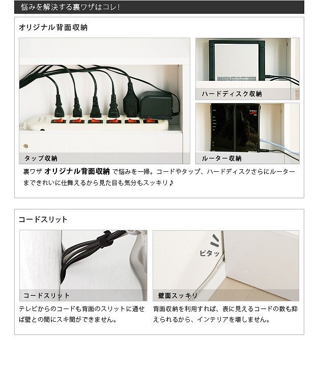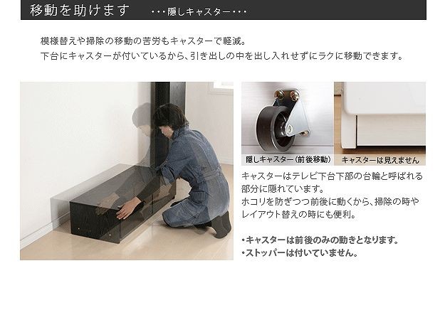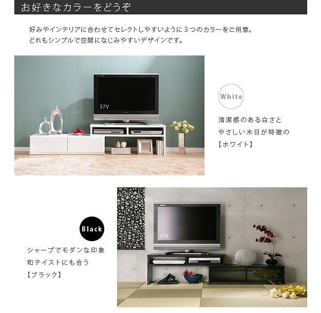 ●商品について:アイデア次第で色々使えるスライド式のTVボード。部屋の形に合わせて角度を変えられるからどんなレイアウトも思いのまま♪背面にテーブルタップを収納できるのでコード類の扱いも簡単☆前後に動くキャスター付きで配線作業、お掃除はラクラク。天板耐荷重50kg