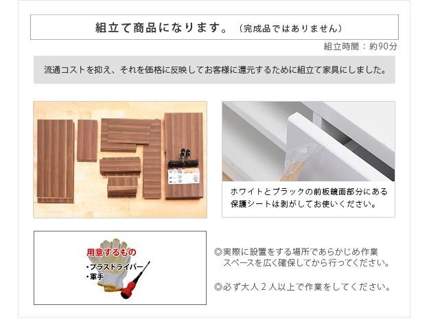 ●カラー:ホワイト(前板鏡面タイプ)・ブラック(前板鏡面タイプ)・ウォールナット