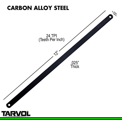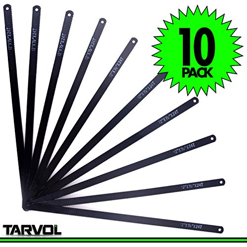 Hacksaw Replacement Blades (10 Pack) High Speed 24 TPI - 12" Length Hack Saw Blade - Carbon Strength Steel - Industrial Premium Grade