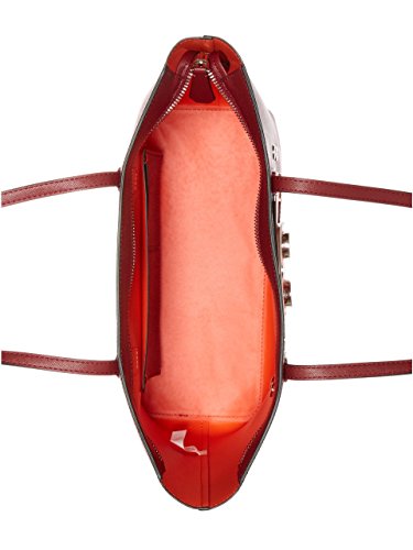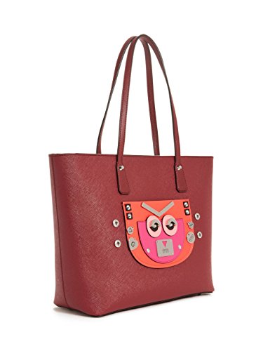 A whimsical face made of silver-tone hardware doubles as a slip pocket at the front of this structured saffiano faux-leather tote. Color-block design, multipurpose interior pockets and top zip closure.Feature