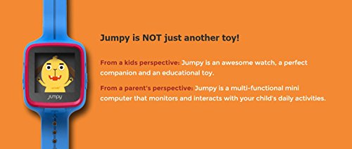 -JUMPY is a multi-functional smartwatch for kids that monitors and interacts with your child's daily activities. With a colorful touch screen, 15 interactive games, intended for ages 4 years and older.