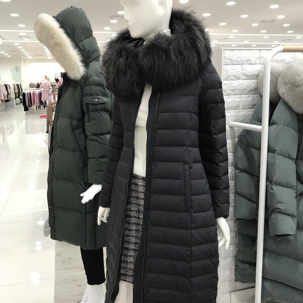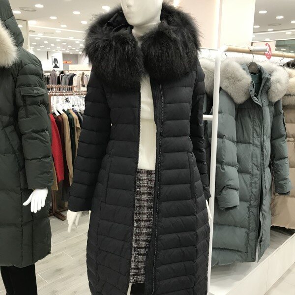 허리라인이 슬림하게들어간 오리털 패딩입니다긴기장에 가볍고따뜻하게입기좋아요오픈해서 착용하셔도예뻐요털은 라쿤 너구리털을 사용하였습니다