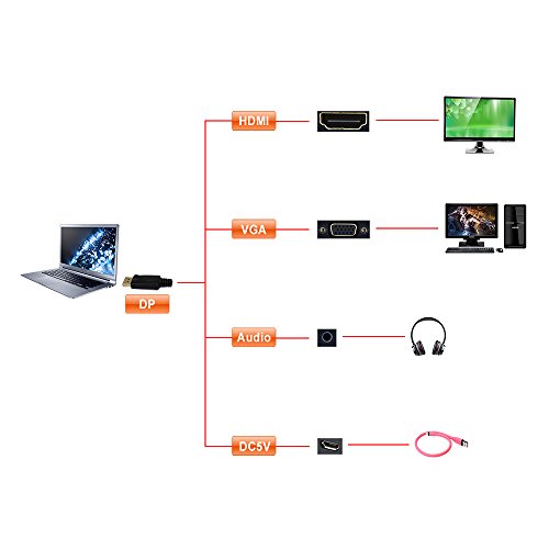 ★ DISPLAYPORT TO HDMI VGA ADAPTER: Transmits both Audio & Video( Both HDMI & VGA Port); Easily display and share your videos, photos, games from Computer/Tablet/ to HDTV, Monitor display (AN EXTRA HDMI/VGA CABLE IS REQUIRED)
