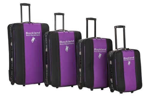 Studio : Rockland Publisher : Rockland Binding : Apparel Product Description Travel in design with a rockland polo equipment 4-piece luggage set. expandable luggage set is manufactured with a heavy-duty eva-molded, hi-count fabric for durability. perfect for the avid traveler, this luggage set comes packed with features: * inside retractable handle, ez-roll inline skate wheels *back zippered pockets *top and side comfort grip handles *piggy back strap on all pieces *stability bars at the bottom to avoide tilting *locks and keys. set includes an extra large upright- 32"l x 21"w x 12"h (expandable 3 inches), large upright 28"l x 20"w x10"h (expandable 3"), medium upright 24"l x 17"w x 9"h (expandable 3 inches) and a wheeled carry-on: 19"l x 14"w x 8"h (expandable 3 inches).