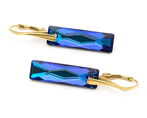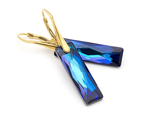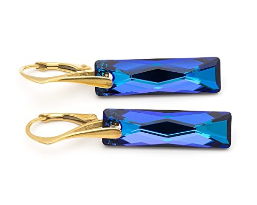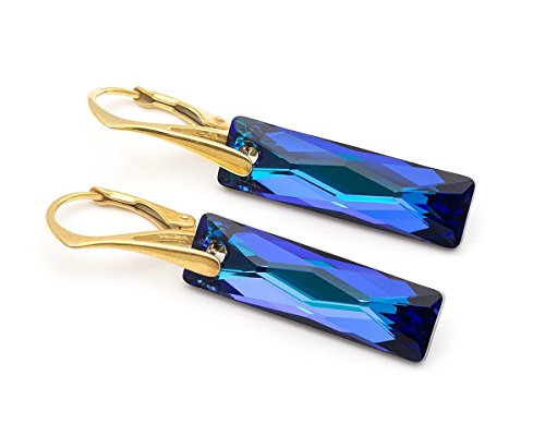 -. Brand : Karolina Laura -. Color : Bermuda Blue -. Department : Women -. ProductGroup : Guild Product -. ProductTypeName : GUILD_JEWELRY -. Title : Bermuda Blue Swarovski Baguette drop big crystal gold plated sterling silver 925 lever back bridal bridesmaid earrings 1.6 in