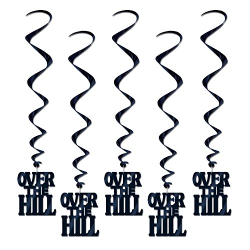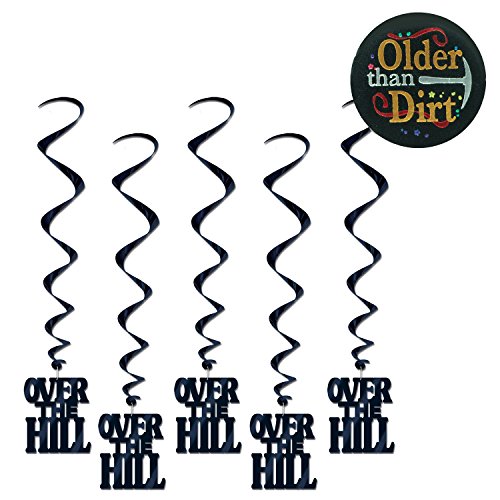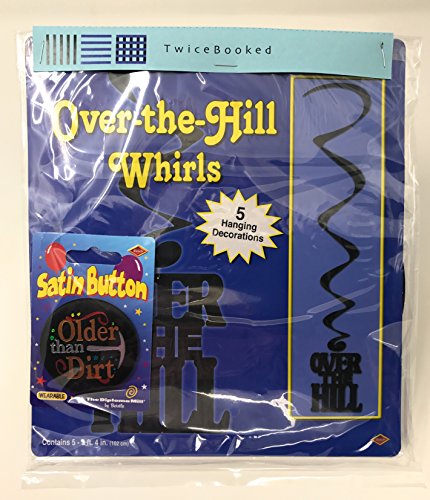 Studio : Asst Publisher : Asst Binding : Health and Beauty Product Description TwiceBooked Over the Hill Hanging Birthday Party Decorations and Older Than Dirt Button. Bundle includes 5 Over-the-Hill hanging decorations. They are black and measure 3' 4" long. They come ready to hang. And one "Older Than Dirt" button is satin, 2 1/4 inches across and ready to pin on the poor birthday girl or guy. This bundle is guaranteed to be a hit for your oldie but goodie birthday bash. 0