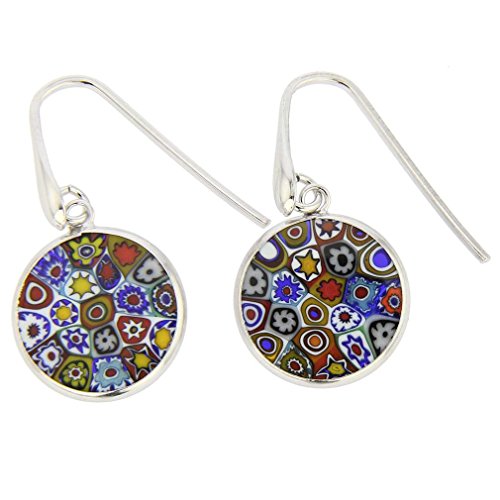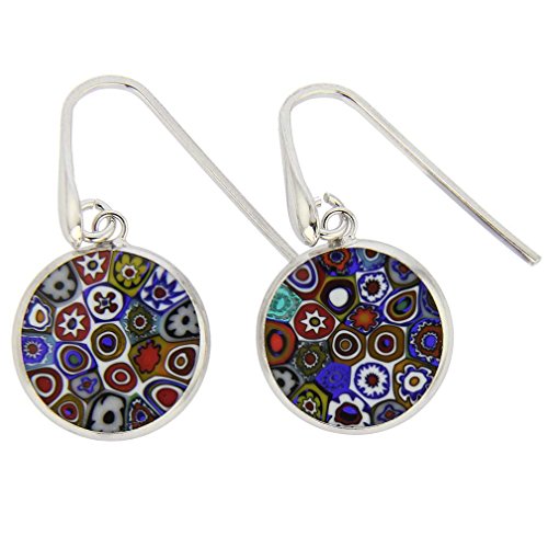 -. Title : GlassOfVenice Murano Glass Millefiori Round Dangle Earrings - Silver