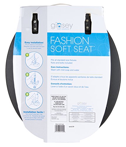 Ginsey Standard Soft Toilet Seat with Plastic Hinges, Black