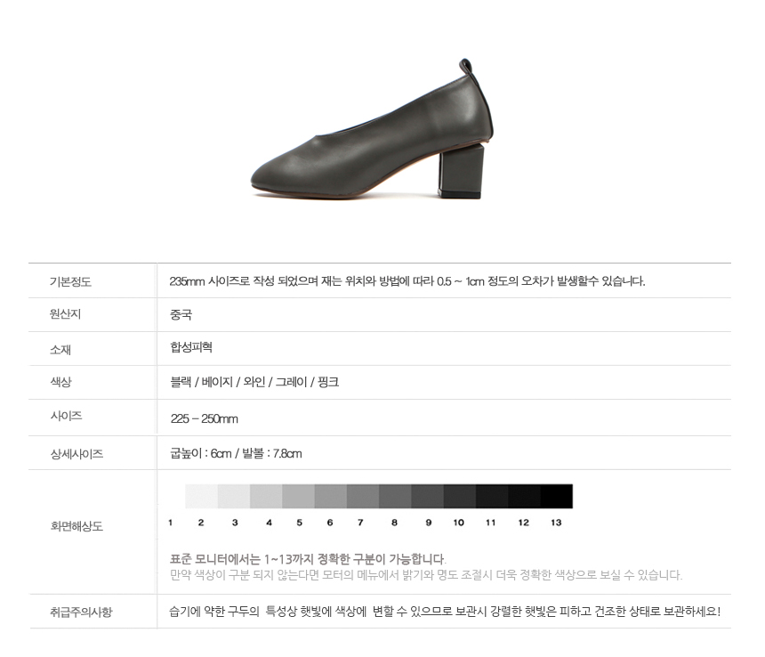 Middle Heel Pumps Round Nose Blue Tongue 6cm Basic Shoe Tongue