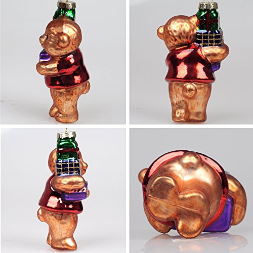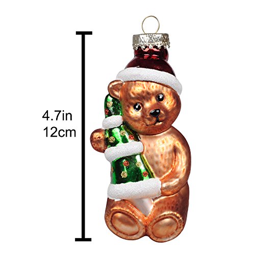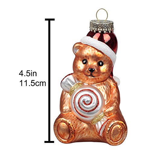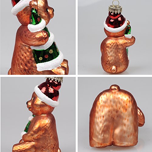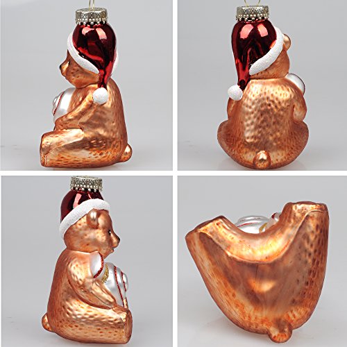KI Store Christmas Tree Ornaments Vintage Glass Teddy Bears 4.7' Hanging Decorations Santa Claus Hand Painted Xmas Tree Cute Figurine Set of 3