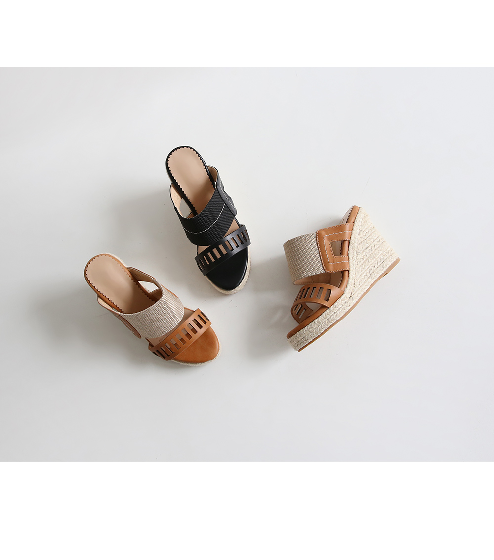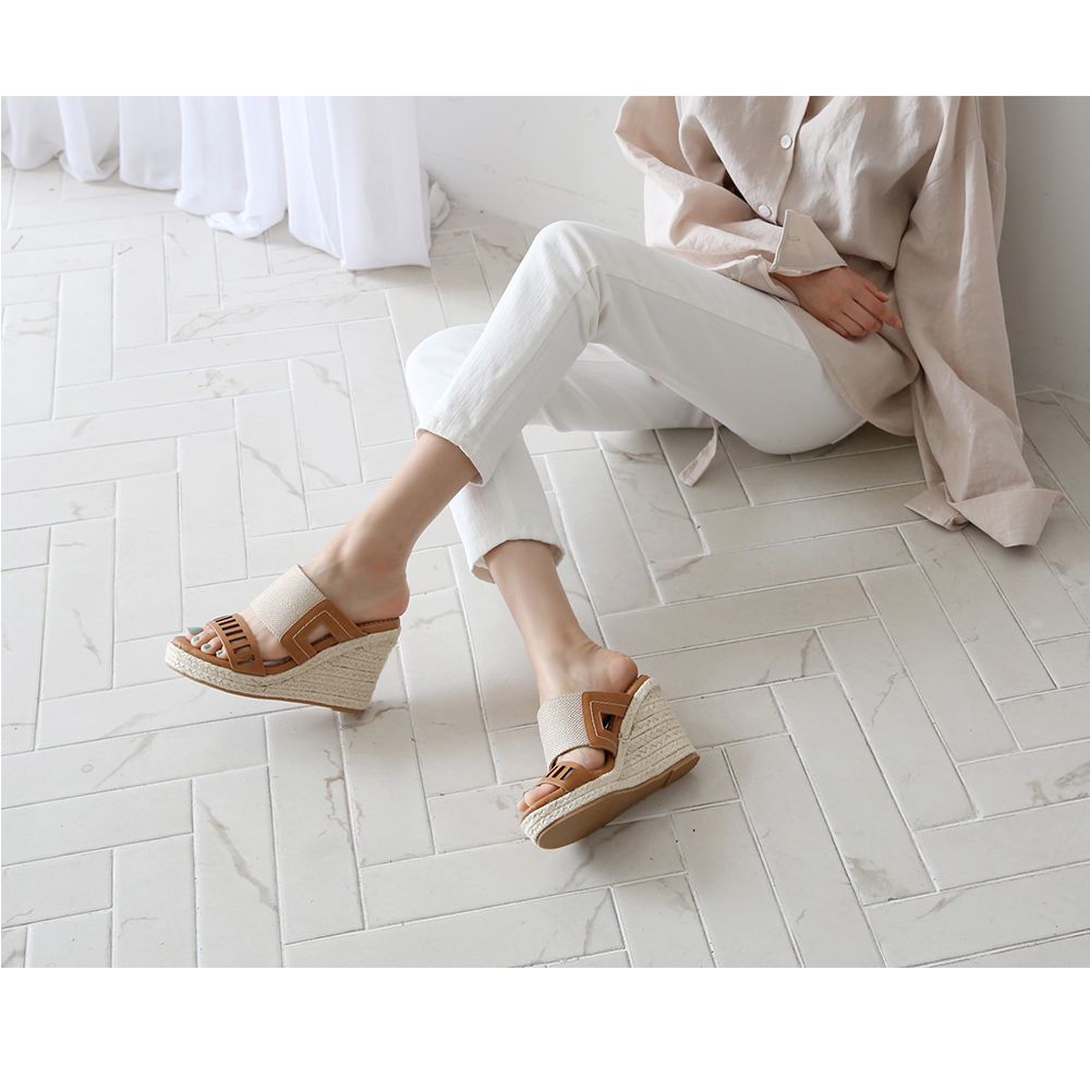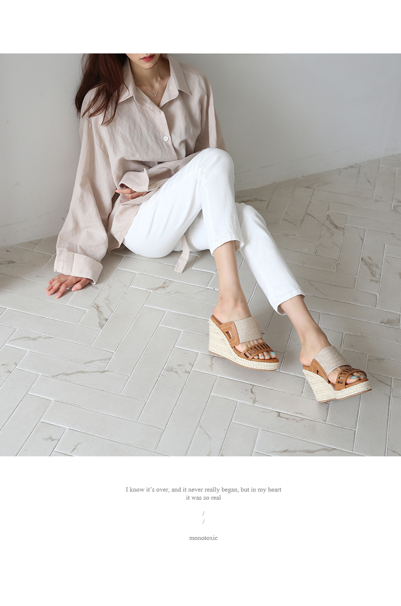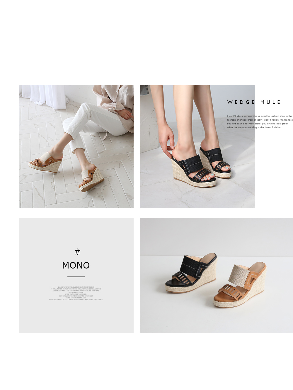 DETAILS - 소재 : 인조소가죽 패브릭 에스파드류 - 컬러 : brown,black - 피팅감 : 정사이즈 / 무게 : 보통인편 - 착화감 : 안정감있는 굽라인으로 편안한 착화감이에요 - 모델피팅 : 235