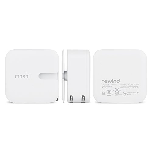 Moshi Rewind 2 Dual-Port Power Adapter for iPhone, iPad, iPod and USB Charging Devices, White