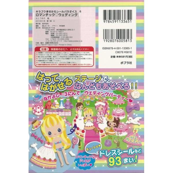 【商品基本情報】 商品名称:ロマンチック・ウエディング-キラプクきせかえシールパラダイス6 著者/出版社:キュートなドレスシールなど93まい!/キュートなドレスシールなど93まい! 初版発行日:2013/03/01 サイズ:B6判 ページ数:2 ISBN/JAN:9784591133651/4528189442986