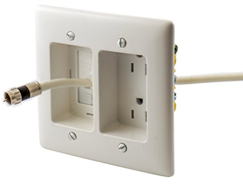 Bryant Electric RR1512W 2-Gang Recessed TV Connection Outlet Plate with 15 Amp 125V Tamper-Resistant Duplex Receptacle with One Pass-Thru Opening, White