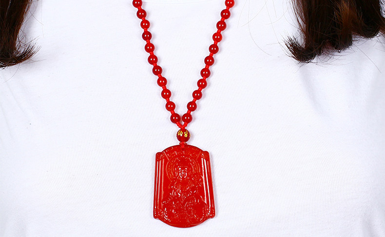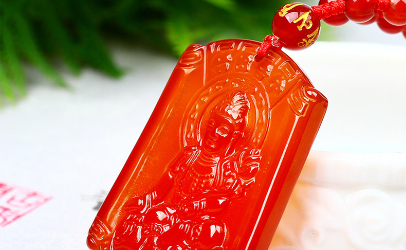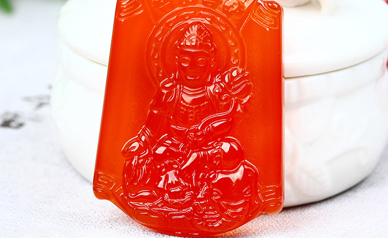 开光红玛瑙生肖守护神吊坠普贤菩萨属龙属蛇本命佛平安玉坠