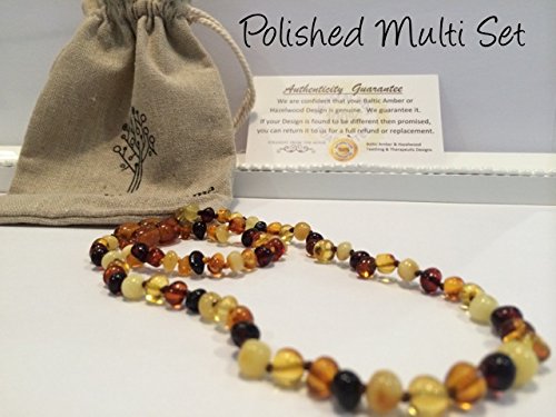 Baltic Amber Teething Necklace for Baby Toddler Multi Rainbow Infant Polished Drooling & Teething Pain Authentic Organic Certified Authentic Screw...