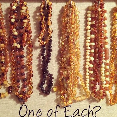 Teething Necklaces are not for baby to chew on. The Amber releases microscopic amounts of oil, as it warms with the body's natural temperature, that is absorbed into the skin and bloodstream. Baltic Amber contains succinic acid (anti-fever, anti-inflammatory), the compound that gives Baltic Amber teething necklaces the therapeutic quality. Baltic amber is an organic substance, a "fossil resin" produced by pine trees which grew in Northern Europe.
