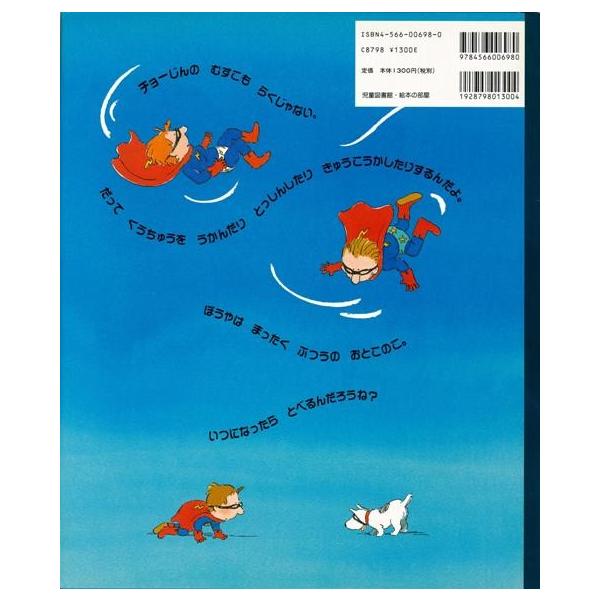 【商品説明】 定価(税込み):1,404円 値引き:10% OFF パパとママは悪漢たいじで有名な、いだいなチョーじん。でもマックスは…まったくふつうの男の子。チョーじんのむすこもらくじゃない。だって空中にうかんだり、突進したり、急降下したりするんだよ。マックスはいつになったらとべるんだろうね? バーゲンブック 新品 特価 格安 子ども ドリル 未就学児向け絵本 もじ すうじ 絵本 えほん 未就学 就学 | |