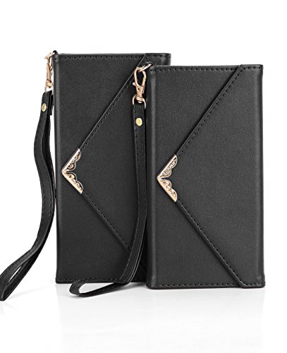 Galaxy S7 Edge Wallet Case, Crosspace® Samsung S7 Edge Envelope Flip Handbag Shell Women Wallet PU Leather Magnetic Folio Cover with Card Holders Wrist Strap for Samsung Galaxy S7 Edge 5.5"-Black