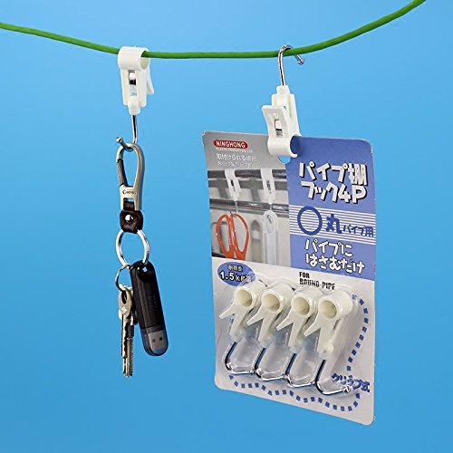 BagTu Hook with Clip for Round Pipe,White,Pack of 4 (Small)