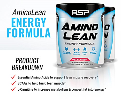 RSP AminoLean – Energized BCAA Amino Acid & Weight Loss Formula to Support Muscle Growth, Recovery, Performance, and Fat Loss, Watermelon, 30 servings