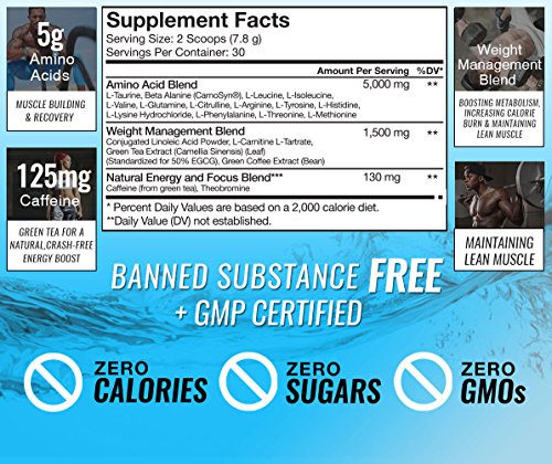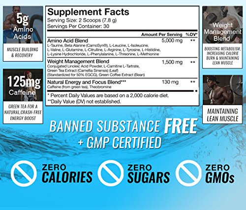 RSP AminoLean – Energized BCAA Amino Acid & Weight Loss Formula to Support Muscle Growth, Recovery, Performance, and Fat Loss, Lemon Lime, 30 servings