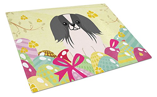 Caroline's Treasures Easter Eggs Pekingnese black White Glass Cutting Board Large, Multicolor