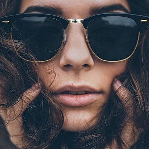 | WebDeals - Vintage Classic Half Frame Horn Rimmed Browline Design Sunglasses |