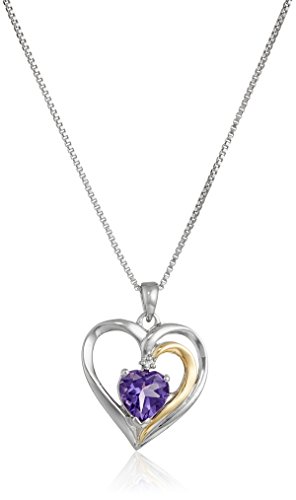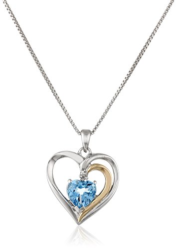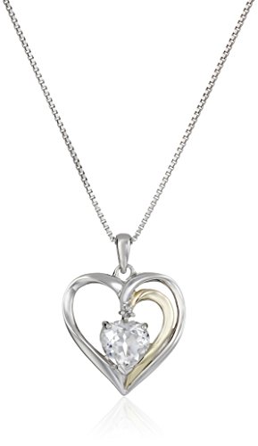 -. Binding : Jewelry -. Brand : Amazon Collection -. Department : women -. Feature : Sterling silver and 14k gold two-tone pendant featuring heart-shape center stone topped with small round diamond / Sterling silver box chain with sP.R.Ing-ring clasp / Gemstones may have been treated to improve their appearance or durability and may require special care. / All our diamond suppliers confirm that they comply with the Kimberley Process to ensure that their diamonds are conflict free. / Imported -. Label : Amazon Curated Collection -. Manufacturer : Amazon Curated Collection -. Model : ESJ56173GCAM-Parent -. MPN : ESJ56173GCAM-Parent -. PartNumber : ESJ56173GCAM-Parent -. ProductGroup : Jewelry -. ProductTypeName : FINENECKLACEBRACELETANKLET -. Publisher : Amazon Curated Collection -. Studio : Amazon Curated Collection -. Title : Sterling Silver and 14k Gold Gemstone Heart Pendant Necklace with Diamond Accent, 18"
