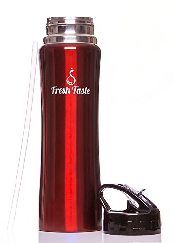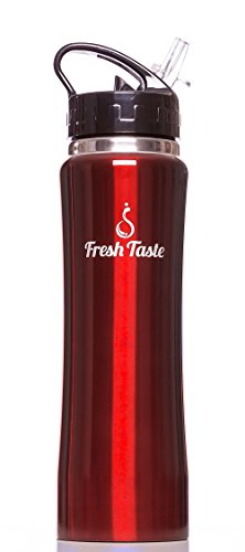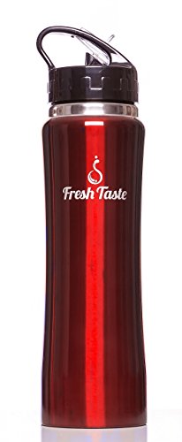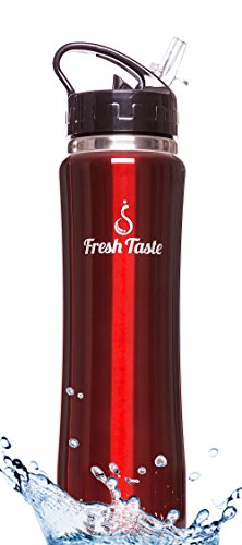 Fresh Taste Stainless Steel Sports Water Bottle - Double Wall Vacuum Insulated Water Bottle with Straw - 25 Ounce - Wide Mouth Opening - Leak Proof Lid - Holds Hot or Cold Liquid - BPA Free - Eco Friendly - Great Reusable Bottle for Adult & Kids (Cri