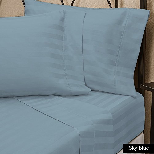 1-Piece Flat Sheet & 2- Piece Pillowcases Both Pattern Solid/Stripe 1000 Thread- Count 100% Egyptian Cotton (Cal-King , Stripe , Sky Blue) By Linen Store