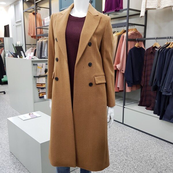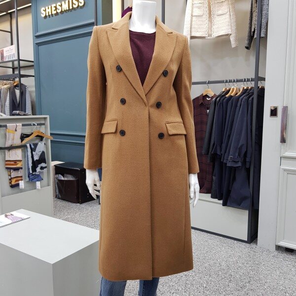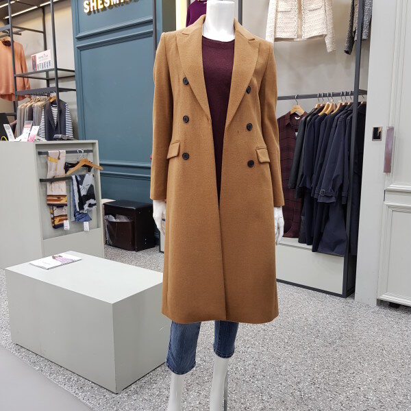 고급스런 모혼방소재의 더블 롱 울코트입니다. 세련된 테일러드의 클래식한 무드연출~ 슬림한 핏에 날씬해 보여요. 무릎아래 롱기장 코트가 모던하고 깔끔한 스타일~