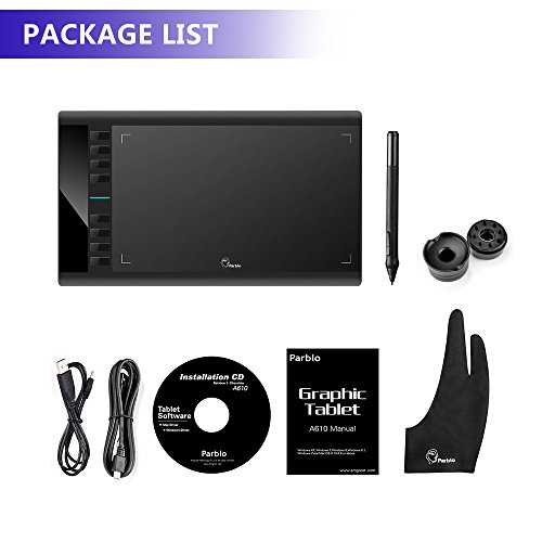 Parblo A610 10" x 6" Graphic Drawing Pen Tablet 2048 Levels Pressure + Two Finger Anti-fouling Glove