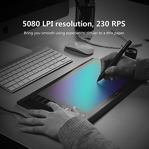 - 5080LPI resolution, 230 RPS bring you smooth using experience, similar to a thin paper. Ergonomic digital stylus, makes you feel like drawing by a pencil.